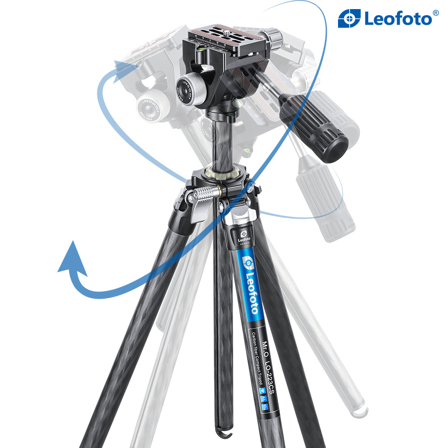 The Leofoto LO Mr. O Series Carbon Fiber Tripod with Built-In Hollow Ball is a lightweight and versatile tripod featuring a hollow ball design that allows the center column to be free of the limitation from linear vertical movement, adjusting its angle freely like a ball head. This adjustable center column positioning works along with the independent leg spread to allow quick leveling of a tripod head when shooting on uneven terrain. In addition to being easily positioned, the center column is removable and reversible for positioning a camera upside down and low to the ground for low-perspective and macro photography. The included short center column provides low positioning with a wide leg spread for added stability.Â